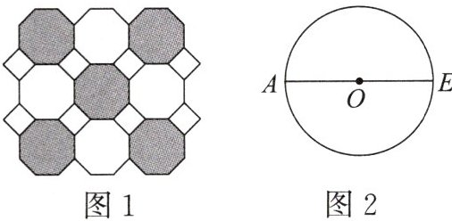 8. 图1是我们常见的地砖上的图案,其中包含了一种特殊的平面图形——正八边形.图2中,AE是$\odot O$的直径,用直尺和圆规作$\odot O$的内接正八边形 ABCDEFGH.(不写作法,保留作图痕迹)