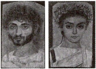 1—4世纪期间的木乃伊肖像画,肖像画呈现出罗马人的服装与面孔,却发现于埃及墓葬区。这反映了 (