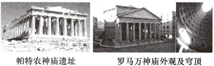 4. [教材改编题]观察下面希腊、罗马建筑艺术的典型代表。下列相关表述正确的是(