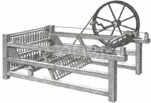 10. 下图所示纺纱机,据说是发明者“一脚踏出的灵感”,并以其女儿“珍妮”的名字命名。这种纺纱机的动力是