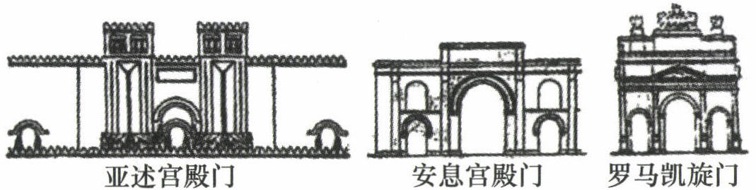 15. [美育]自罗马共和国晚期起,拱门形制逐渐成为古罗马建筑的一个显著特色。据下图可知,人类文明交往