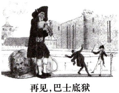 3. 下图漫画背景是正在被拆除的巴士底狱,画面中央一个人(第三等级的无套裤汉)正在演奏风笛,他手上牵着一只被驯服的狮子(国王路易十六),腿上操纵着两个木偶(第一等级教士和第二等级贵族)。该漫画的寓意是(