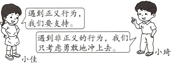 (2)赞同小佳的观点。正义感是公民的基本德行;期盼正义、实现正义、维护正义,是我们的共同心声;守护正义需要勇气和智慧,面对非正义行为,一方面要敢于斗争,另一方面要讲究策略,寻找有效的方法,做到见义“智”为等。