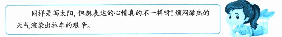 同样是写太阳,但想表达的心情真的不一样呀!烦闷燥热的天气渲染出拉车的艰辛。