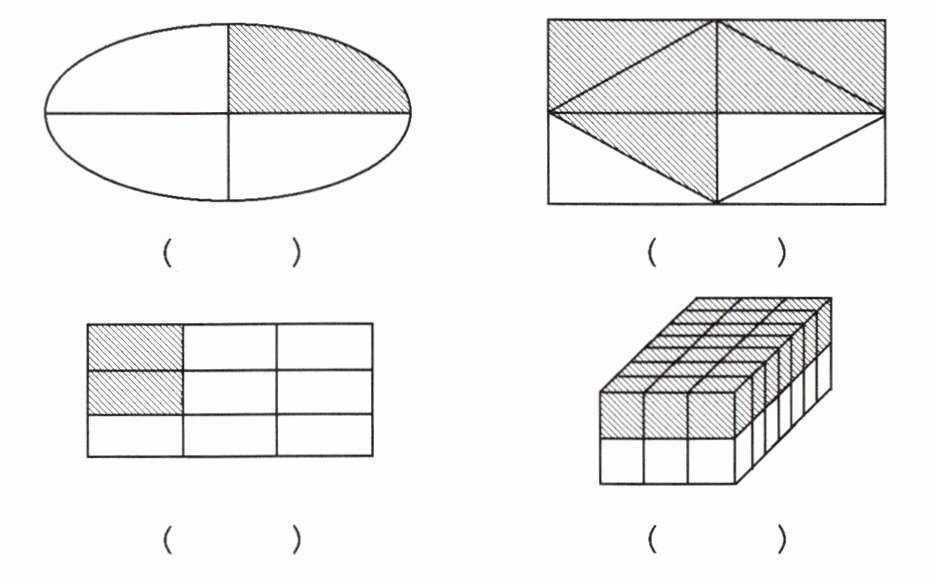 3. 用分数表示下面各图中的阴影部分,并填在()里。