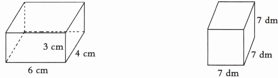 1. 长方体体积是$72cm^{3}$,正方体体积是$343dm^{3}$。