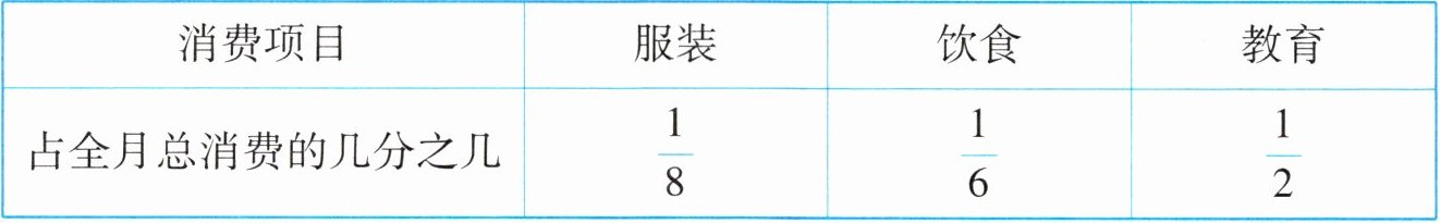 2. 占最多的教育消费比服装消费多$\frac{3}{8}$,比饮食消费多$\frac{1}{3}$。