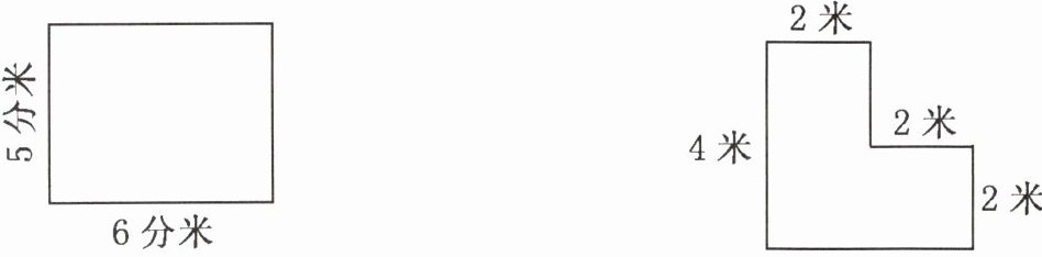 - 右边图形:面积是$12$平方米,周长是$16$米。