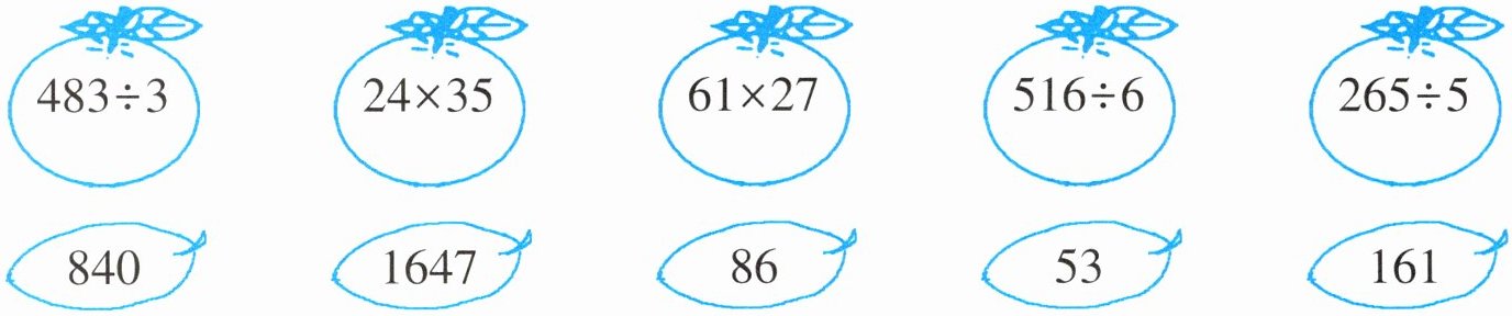 $483\div3$连$161$;$24\times35$连$840$;$61\times27$连$1647$;$516\div6$连$86$;$265\div5$连$53$。