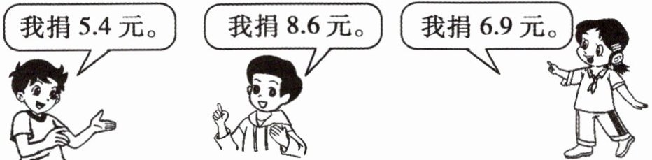 解答:$5.4 + 8.6 + 6.9 = 20.9$(元),答:三人一共捐款$20.9$元。