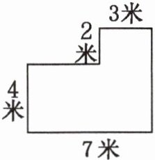 - 面积:大长方形面积$S_{1}=7\times(4 + 2)=42$平方米,小长方形面积$S_{2}=3\times2 = 6$平方米,所以该图形面积$S=S_{1}-S_{2}=42-6 = 36$平方米。