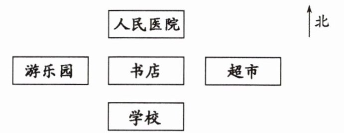 1. 游乐园在书店的______面,在人民医院的______面,在学校的______面。