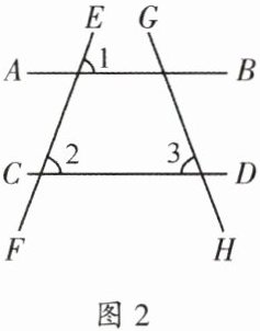 2. 如图 2,$∠3与∠1$互余,$∠3与∠2$互余. 试说明$AB// CD$.