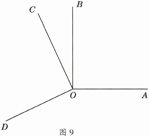 1. 如图 9,$O$处是一航海灯塔,在灯塔的正东方有一船$A$,正北方有一船$B$,北偏西$25^{\circ}有一船C$,在与$OC垂直的方向OD处有另一船D$,求$∠AOD$的度数。
