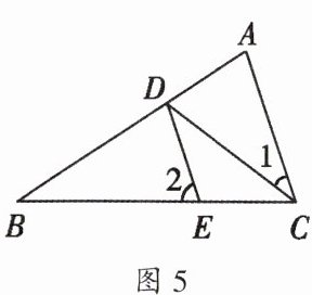 2. 如图 5,$CD平分∠ACB$,$DE// AC$,$∠1 = 30^{\circ}$,则$∠2 = $______$^{\circ}$.