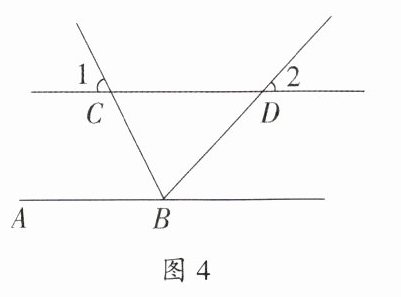 1. 如图 4,直线$AB// CD$,$BC平分∠ABD$,$∠1 = 65^{\circ}$,则$∠2 = $______$^{\circ}$.