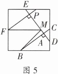 2. 李强同学在王玲同学折纸的基础上,补充了条件:如图5,在线段AP上任取一点M,连接FM、BM,请你猜想∠ABM、∠PFM与∠BMF这三个角之间的数量关系,并说明理由。