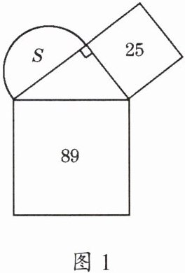 1. 如图1,89、25均为两正方形的面积,则图中S所代表半圆面积为____.