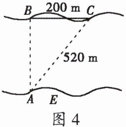 1. 如图4,某人欲横渡一条河,由于水流的影响,实际上岸地点C偏离目的地B处有200m,结果他在水中实际游了520m,求该河流的宽度AB的长.