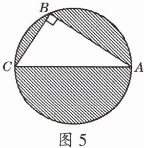 6. 如图5,Rt△ABC中,∠B= 90°,以AC为直径的圆恰好经过点B。AB= 8,BC= 6,则阴影部分面积为()