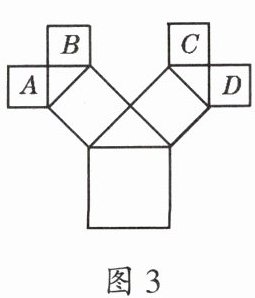 4. 如图3,所有的四边形都是正方形,所有的三角形都是直角三角形,其中最大的正方形边长为7厘米,则正方形A、B、C、D的面积和为()