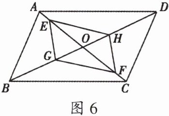 2. 如图6,平行四边形$ABCD的对角线AC$、$BD交于点O$,$E$、$F在AC$上,$G$、$H在BD$上,$AF = CE$,$BH = DG$. 求证:$GF// HE$.