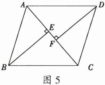 1. 如图5,已知$E$、$F是\square ABCD对角线AC$上的两点,且$BE\perp AC$,$DF\perp AC$.