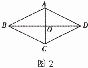已知:如图 2,四边形 $ ABCD $ 是菱形,对角线 $ AC $,$ BD $ 交于点 $ O $。