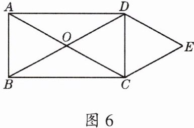 3. 如图 6,矩形 $ ABCD $ 对角线 $ AC $、$ BD $ 交于点 $ O $,过 $ C $ 作 $ CE // BD $,过 $ D $ 作 $ DE // AC $,$ DE $ 与 $ CE $ 交于 $ E $。求证:$ OCED $ 为菱形。