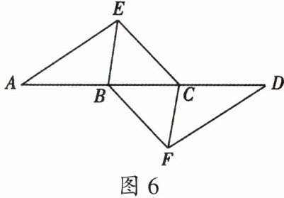 2. 如图 6,点 $ A $,$ B $,$ C $,$ D $ 在同一条直线上,点 $ E $,$ F $ 分别在直线 $ AD $ 的两侧,且 $ AE = DF $,$ ∠A = ∠D $,$ AB = DC $。