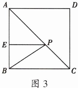 3. 如图3,在正方形ABCD中,E是AB上一点,BE= 2,AE= 3BE,P是AC上一动点,则PB+PE的最小值是____.