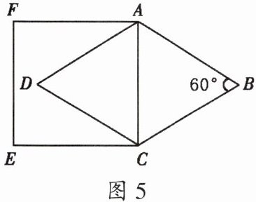 5. 如图5,菱形ABCD中,∠B= 60°,AB= 4,则以AC为边长的正方形ACEF的周长为()