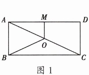 1. 如图1,O是矩形ABCD的对角线AC的中点,M是AD的中点,若AB= 5,AD= 12,则四边形ABOM的周长为____.