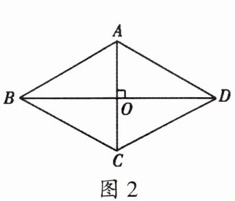 2. 如图2,四边形ABCD是对角线互相垂直的四边形,且OB= OD,请你添加一个适当的条件____,使四边形ABCD成为菱形.(只需添加一个即可)