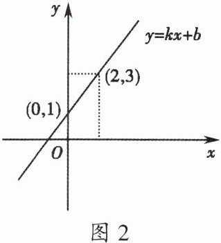 5. 一次函数 $ y = kx + b $($ k $,$ b $ 为常数,且 $ k \neq 0 $)的图象如图 2 所示,根据图象信息可求得关于 $ x $ 的方程 $ kx + b = 0 $ 的解为 。