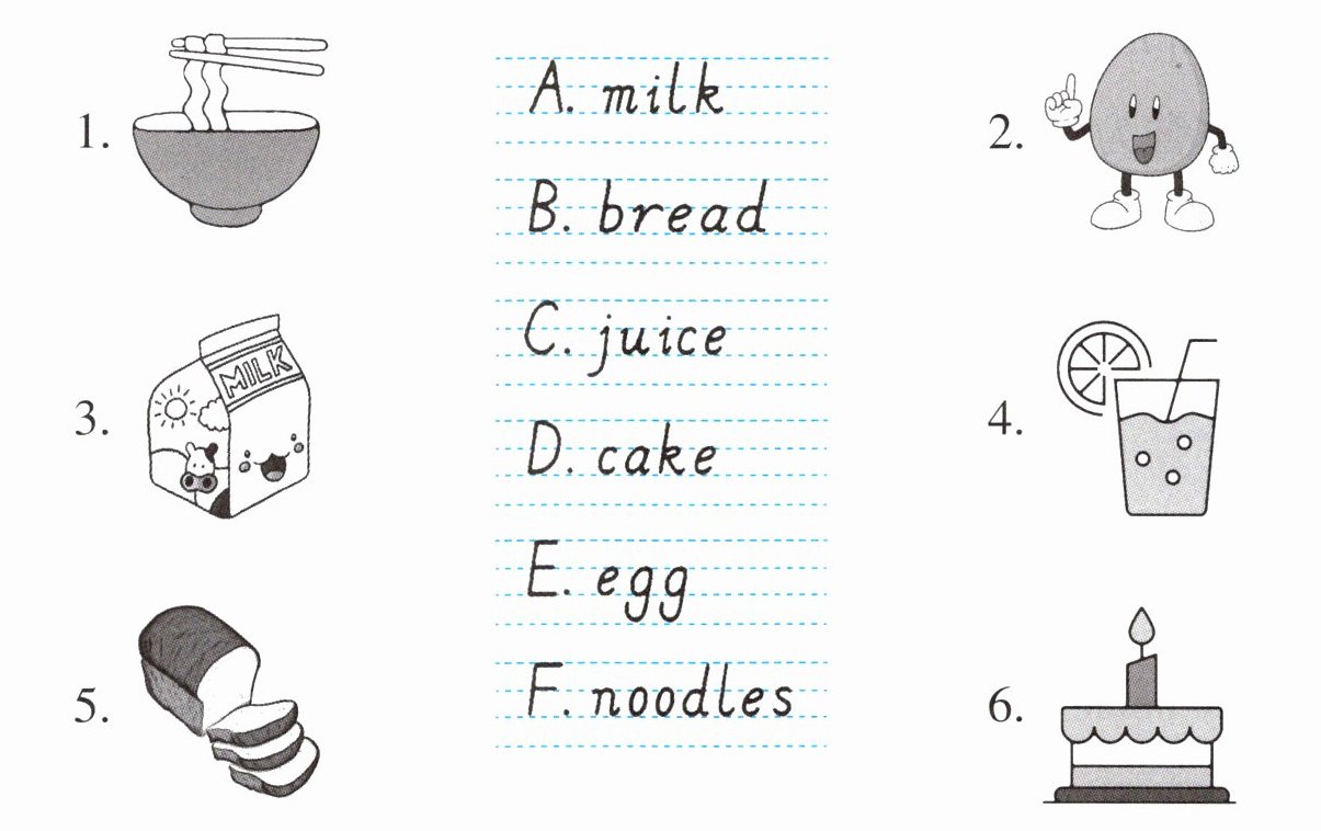 6. meat 7. rice 8. bread 9. juice 10. bananas