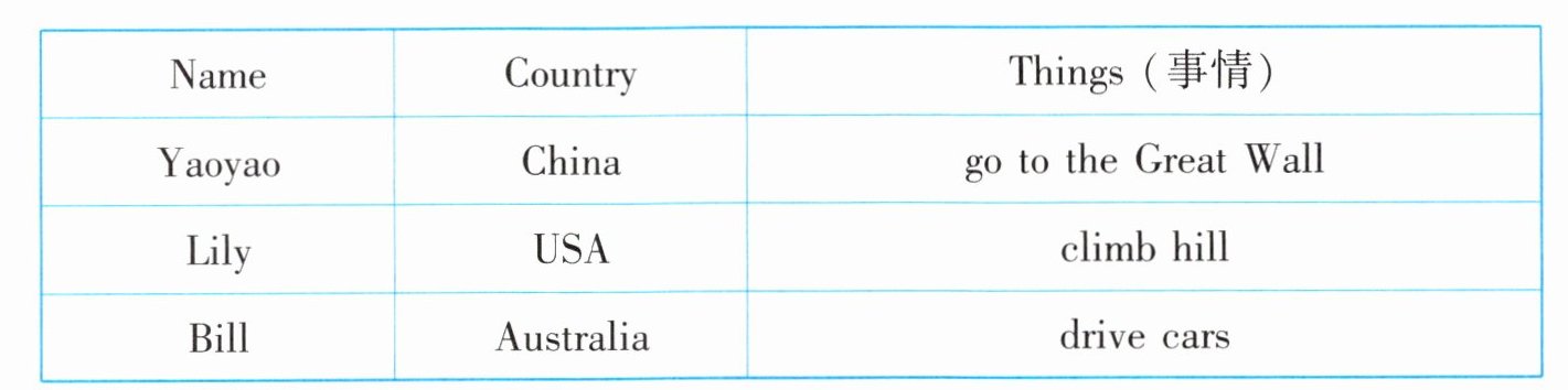 Bill is in ______. He likes to drive ______. Lily is in the ______. She likes to climb hill. ______ is in China. She likes to go to the ______.