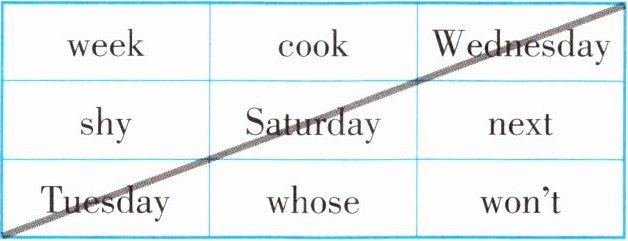 一、单词消消乐。请用/或\连接三个同类的单词。