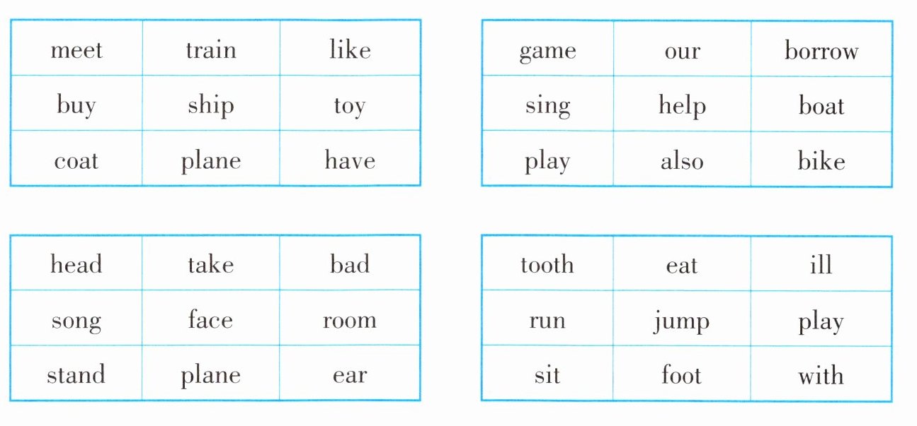 2. 第二组中“borrow(借)”“sing(唱)”“help(帮助)”“play(玩)”都属于动词,这里选取三个同类动词。