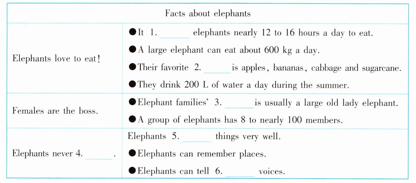 Elephants never forget. Elephants are good at remembering things, because they have the largest brains(大脑) of any land animal. They can remember places where food and water can be found. They can even tell the difference between the call of a friend and the call of an enemy(敌人).