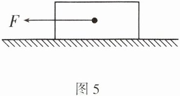 14. 如图5所示,在水平向左的4N拉力作用下,木块在水平桌面上向左做匀速直线运动。请你用力的示意图作出它受到的摩擦力