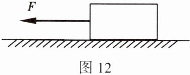 21. 如图12所示,底面积为$0.1m^{2}$的木块质量为30kg,放在面积为$400dm^{2}$的水平面上,现用水平拉力F拉着木块在水平面上做匀速直线运动,已知在运动过程中木箱所受的摩擦力是重力的0.3倍。求:(g取10N/kg)