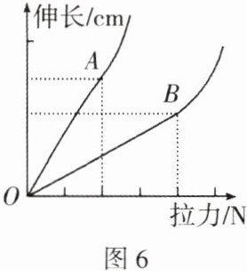 14. 学校初中部的科技活动小组的同学们准备自己动手制成弹簧测力计,他们选了 A、B 两种规格不同的弹簧进行测试,绘出如图 6 所示的图像,图像中只有 OA 段和 OB 段是弹性形变,若他们要制作量程较大的弹簧测力计,应选用弹簧____,若要制作精确程度较高的弹簧测力计,应选用弹簧____。(均选填“A”或“B”)