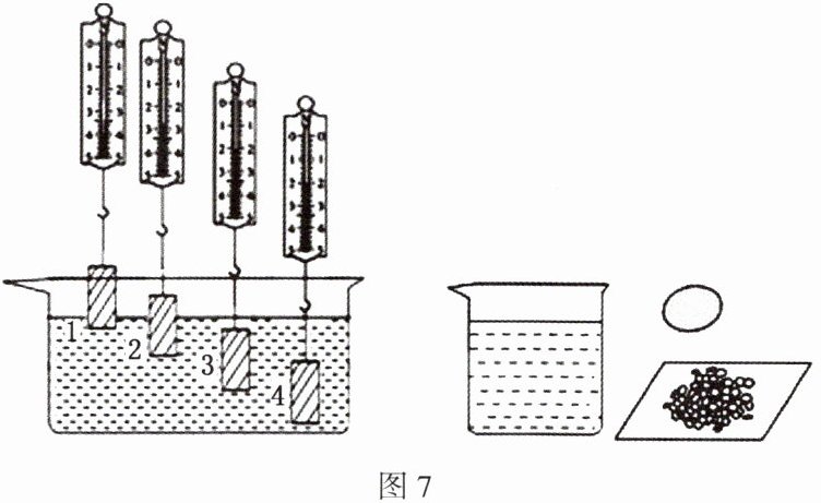 (3)给你一杯清水、一个熟鸡蛋和适量的食盐(如图7),请你设计实验验证浮力与液体的密度是否有关。简要写出你的实验验证的方法。