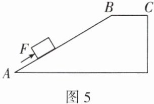 11. 如图5所示,一个斜坡长5m、高3m,搬运工人将一个重500N的货箱从斜坡底部(A点)推上顶端(B点),在这个过程中,工人克服货箱重力做的功是______J。在平台BC上,搬运工人又用了200N的推力将货箱匀速推移了1m,在这个过程中,工人克服货箱重力做的功是______J,推力做的功是______J。