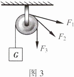 5. 在使用定滑轮时,沿如图3所示,三个方向用力拉起重物,三个力的大小是()