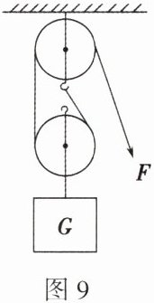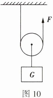 16. 如图10所示,物体重为100N,若不计任何摩擦及绳重,且不考虑动滑轮重时,匀速拉动滑轮向上运动0.5m时,拉力F的大小为______N,拉力做的功为______J,机械效率为______。若考虑动滑轮重且动滑轮重8N时,则匀速拉动滑轮向上运动0.5m时,拉力F大小为______N,拉力做的功为______J,机械效率为______。