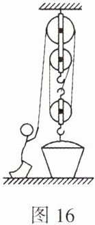 24. 工人用图16所示装置在10s内将质量为45kg的货物匀速提升2m,此过程中拉力的功率为120W。($ g $取10N/kg)求: