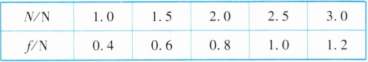 (2)若小华选用正确的实验装置进行实验得到下表所记录的实验数据,请根据数据在所给坐标中作出摩擦力的大小f与接触面受到的压力大小N之间的关系图像。