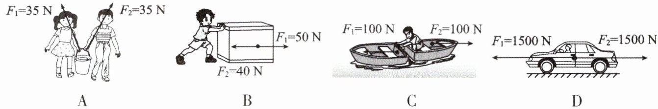 6. 在下列情景中,$F_{1}和F_{2}$彼此平衡的是()